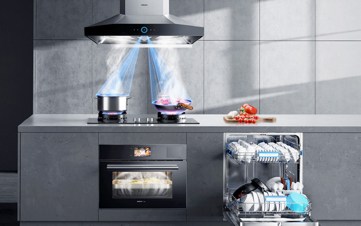 油烟机作为厨房的必备家电,能有效地去除烹饪过程中 产生的油烟和异味,为室内环境保驾护航。随着生活品质的提高,消费者对油烟机的期望值也在不断增加,不再局限于传统的基础性能优化,还期待引入智能化的功能来应对操作繁琐、手忙脚乱等问题。此外,消费者在选择油烟机时,也更加注重产品的颜值,追求简约时尚的外观设计,做到与整体厨房风格的协调统一。可以发现,近年来市场上白色烟机开始慢慢崭露头角,它适合于奶油风、极简风等各类装修风格,深受年轻用户青睐。